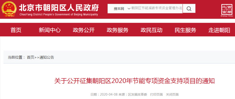 公開征集朝陽區(qū)2020年節(jié)能專項資金支持項目的通知