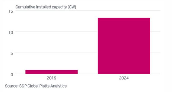 美國各州政策和峰值容量需求將仍然是促進電池儲能系統(tǒng)部署的主要驅動力。普拉茨分析公司預計,到2024年,美國將有裝機容量為13GW以上的電網規(guī)模電池儲能系統(tǒng)投入使用。