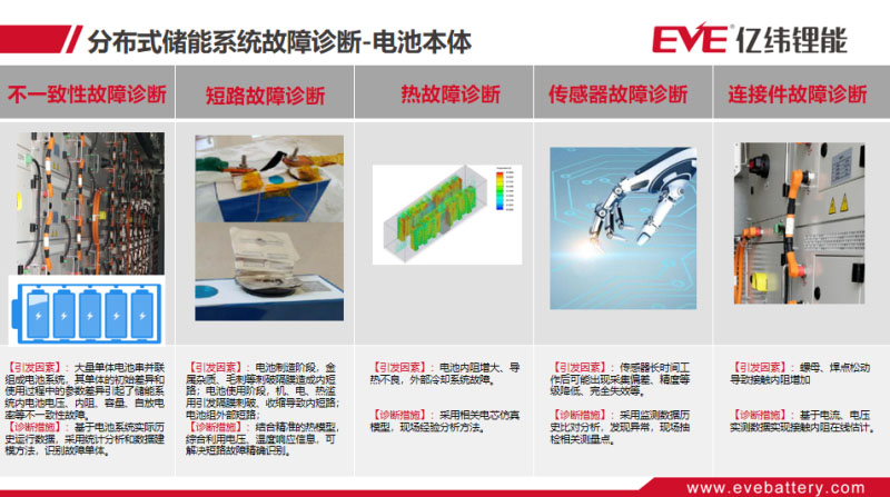 關(guān)于系統(tǒng)故障的診斷,這個地方我們做了一些相關(guān)的分析,有包含有電池的不一致,還有我們的連接,特別連接的這一部分是要特別強調(diào)的,因為在用戶側(cè)倍率比較小,一般都是0.25C到0.33C,大家一般不會太在意在PACK設(shè)計的過程當(dāng)中。去年和前年有一些項目里面有些友商還會采用擰螺絲的方式去做內(nèi)部連接,這都是存在的隱患和故障點,但這種故障點要去排查是非常難的。