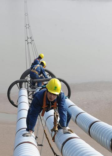 據(jù)介紹,這條世界上首次投入運(yùn)營的特高壓交流線路全長640公里,電壓等級(jí)是世界最高的,達(dá)到1000千伏,輸送的電能是現(xiàn)有的500千伏的5倍,輸送過程的電能損耗和占地面積都可以節(jié)省一半以上,整個(gè)工程的投資比500千伏的線路節(jié)省三分之一。縱跨晉豫鄂三省,其中還包含黃河和漢江兩個(gè)大跨越段。線路起自山西1000kV晉東南變電站,經(jīng)河南1000kV南陽開關(guān)站,止于湖北1000kV荊門變電站。