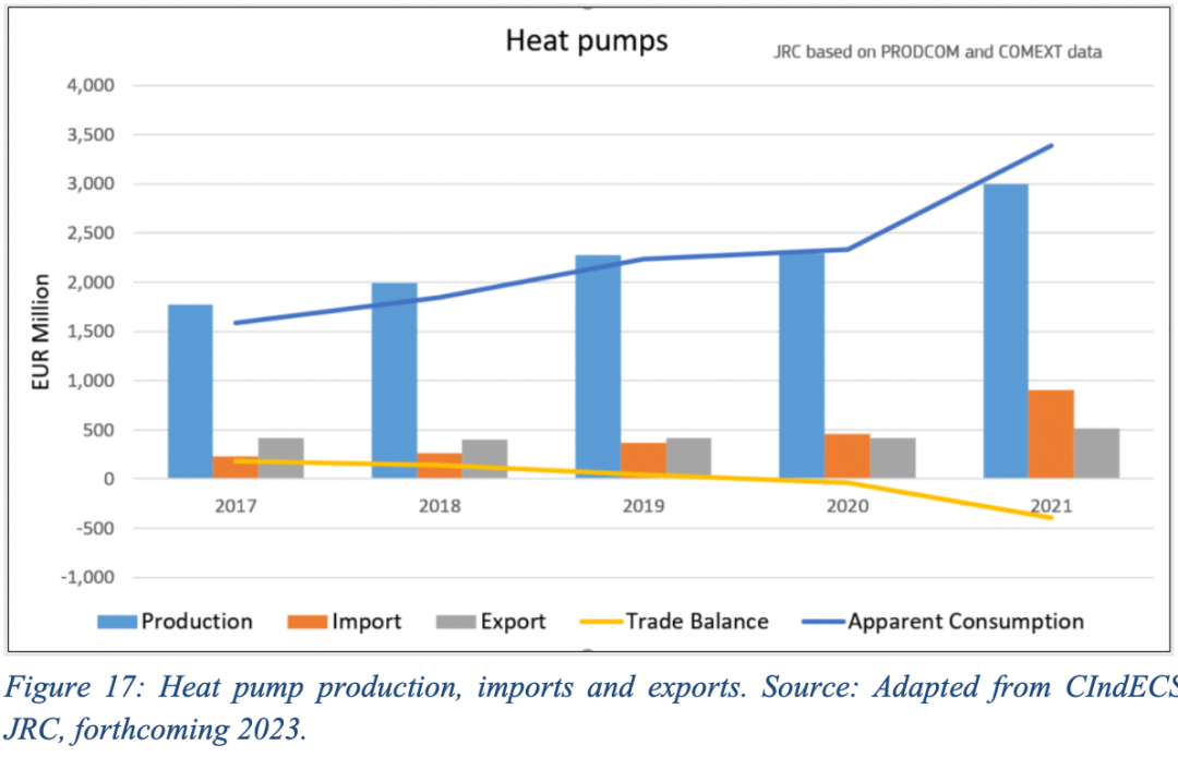 最近出現了進口增加的趨勢,特別是來自中國的進口,但進口基數很小。歐盟進口的熱泵價值從2020年的4.55億歐元增加到2021年的9.02億歐元。然而,這一增長背后的原因尚不清楚,因此現在確認中期趨勢還為時過早。