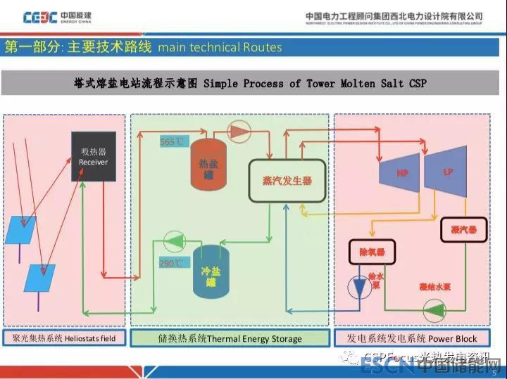 塔式熔鹽電站和之前提到的槽式熔鹽電站從電能輸出特性來講比較優(yōu)秀,比較靈活適應電網(wǎng)側需求,而且與槽式導熱油電站相比,節(jié)省導熱油工藝,整個系統(tǒng)比緊湊。因此具有很強的優(yōu)勢。