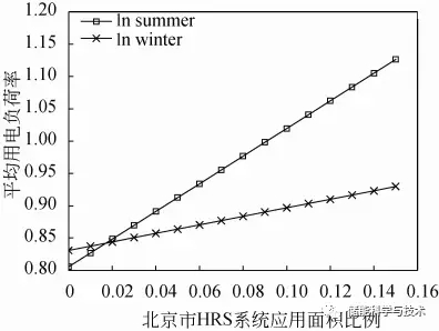 圖2 北京市HRS應(yīng)用面積比例對(duì)電網(wǎng)平均用電負(fù)荷率的影響