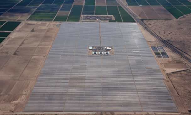 全球最大的槽式電站是美國裝機(jī)280MW的Solana光熱電站,于2013年10月正式投運(yùn),該電站配裝兩個各140MW的汽輪發(fā)電機(jī)組,該電站位于亞利桑那州鳳凰城西南70英里的GilaBend附近,年發(fā)電量高達(dá)9.44億度,可滿足7萬家庭的日常用電需求。