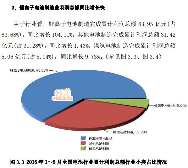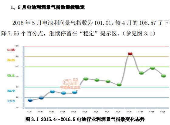 中國儲(chǔ)能網(wǎng)訊:2016年5月電池利潤景氣指數(shù)為101.01,較4月的108.57了下降7.56個(gè)百分點(diǎn),繼續(xù)停留在“穩(wěn)定”提示區(qū)。從子行業(yè)看,鋰離子電池制造完成累計(jì)利潤總額63.95億元,同比增長104.11%;其他電池制造完成累計(jì)利潤總額31.42億元,同比增長1.43%。