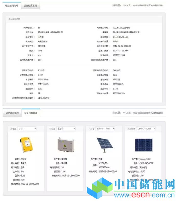 該頁面包含了電站基礎(chǔ)信息、設(shè)備檔案信息(設(shè)備名稱、質(zhì)保期、型號(hào)及類型)等。