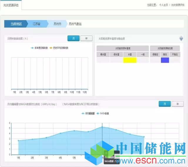 包括日照時(shí)數(shù)曲線、太陽能資源豐富度與穩(wěn)定度、月均曝輻量與NASA數(shù)據(jù)對(duì)比曲線等。