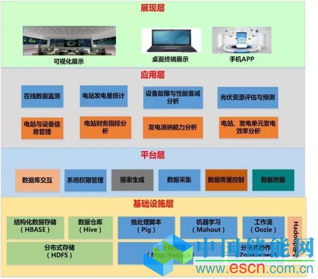 這個(gè)平臺(tái)計(jì)劃在2016年接入50座光伏電站,總裝機(jī)容量超過3GW,目前搭建的數(shù)據(jù)后臺(tái)存儲(chǔ)容量已經(jīng)達(dá)到40TB,可以滿足未來五年的數(shù)據(jù)存儲(chǔ)要求,機(jī)選性能確保查詢時(shí)間小于1秒。目前已經(jīng)完成數(shù)據(jù)平臺(tái)機(jī)房的一期系統(tǒng)建設(shè)并投入運(yùn)營。