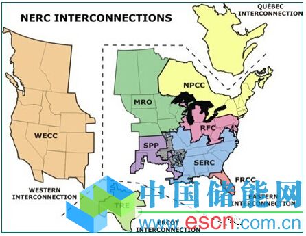 中國儲能網(wǎng)訊:北美聯(lián)合電網(wǎng)由美國東部電網(wǎng)、西部電網(wǎng)、德州電網(wǎng)和加拿大魁北克電網(wǎng)四個同步電網(wǎng)組成,覆蓋美國、加拿大和墨西哥境內的下加利福尼亞州。北美聯(lián)合電網(wǎng)區(qū)域分布圖如所示。