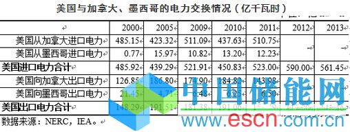 北美聯(lián)合電網(wǎng)中,美國和加拿大之間電量交換大、與墨西哥之間電量交換較小,美國是凈進口國,加拿大、墨西哥是凈出口國。2012年,美國進出口電量合計705億kW˙h,同比增加5.4%。美國北部各電力公司和加拿大魁北克、安大略等電力公司之間長期進行電力交換。加拿大以水電為主,最高負荷出現(xiàn)在冬季,美國以火電為主,最高負荷出現(xiàn)在夏季,加拿大豐富的水電資源與美國大量燃煤火電之間形成良好的互補調節(jié)。加拿大在向美國出口低成本水電的同時,也在用電低谷(夜間)進口美國的廉價煤電,用以節(jié)約水電資源,在用電高峰向美國出口。加拿大新不倫瑞克省、魁北克省、安大略省、馬尼托巴省、薩斯喀徹溫省、不列顛哥倫比亞省和美國之間南北聯(lián)絡線超過100條,其中69kV以上聯(lián)絡線共有33條。