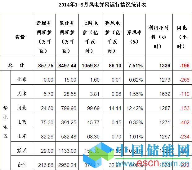 中國儲能網(wǎng)訊:1-9月,全國風電新增并網(wǎng)容量858萬千瓦,到9月底,全國累計并網(wǎng)容量8497萬千瓦,同比增長22%;1-9月,全國風電上網(wǎng)電量1060億千瓦時,同比增長7.6%。受國家一系列宏觀調控措施影響,1-9月全國風電棄風限電形勢繼續(xù)好轉,風電棄風電量86億千瓦時,同比下降28.3億千瓦時;平均棄風率7.5%,同比下降3.36個百分點。受今年來風情況較小影響,1-9月全國風電平均利用小時數(shù)1336小時,同比下降196小時。