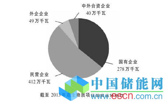 按照投資企業(yè)類型來(lái)看,截至2013年底,我國(guó)生物質(zhì)發(fā)電項(xiàng)目的建設(shè)投資主體中,國(guó)有企業(yè)并網(wǎng)容量達(dá)278萬(wàn)千瓦、民營(yíng)企業(yè)為412萬(wàn)千瓦、外資企業(yè)為49萬(wàn)千瓦、中外合資企業(yè)為40萬(wàn)千瓦。