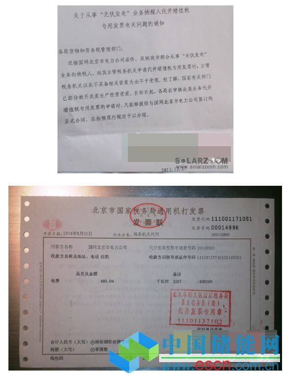 2014年2月,國(guó)家電網(wǎng)順義供電公司按時(shí)送來(lái)了我家光伏系統(tǒng)2013年的光伏發(fā)電結(jié)算單(見(jiàn)附圖),確認(rèn)了應(yīng)得的光伏補(bǔ)貼和上網(wǎng)電費(fèi)。其中,光伏上網(wǎng)電費(fèi)部分,由順義國(guó)稅局代開(kāi)了發(fā)票后,國(guó)網(wǎng)順義公司同意支付,問(wèn)題得到解決;光伏補(bǔ)貼部分,順義國(guó)稅經(jīng)與北京市國(guó)稅咨詢,認(rèn)為目前沒(méi)有對(duì)應(yīng)光伏補(bǔ)貼的發(fā)票類型,并認(rèn)為財(cái)政補(bǔ)貼是不需要開(kāi)發(fā)票的。本人將國(guó)稅的解釋轉(zhuǎn)給國(guó)網(wǎng)順義公司后,國(guó)網(wǎng)經(jīng)內(nèi)部協(xié)商,堅(jiān)持認(rèn)為補(bǔ)貼必須先開(kāi)發(fā)票才能支付。國(guó)網(wǎng)和國(guó)稅雙方一直僵持近3月,光伏補(bǔ)貼領(lǐng)取受阻,問(wèn)題無(wú)法解決。作為一個(gè)平民百姓,只能表示無(wú)奈。