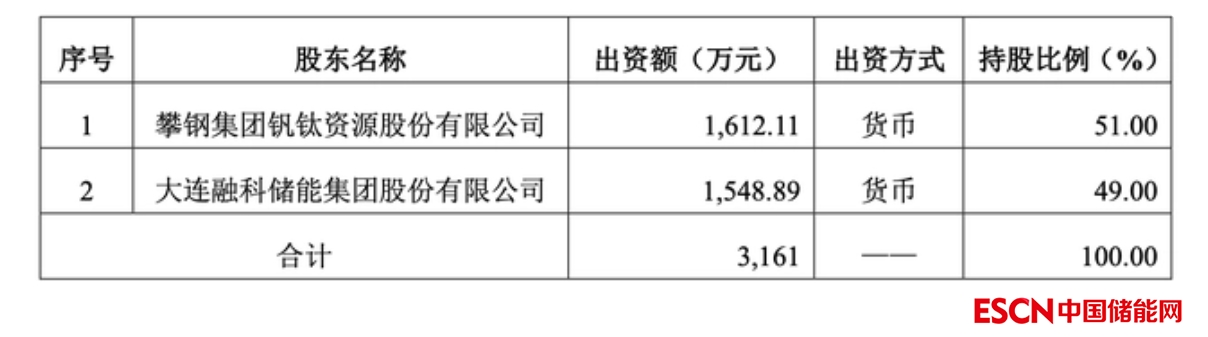 (四川釩融儲能科技有限公司持股比例,來源:公告)