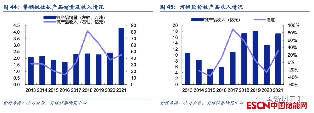 全釩液流電池儲能發(fā)展有望明顯拉動上游釩資源需求,建議關(guān)注攀鋼釩鈦、河鋼股份等產(chǎn)能領(lǐng)先的釩資源企業(yè)。在傳統(tǒng)鋼鐵領(lǐng)域需求趨緩甚至萎縮的情況下,我們認(rèn)為國內(nèi)豐富的釩資源儲量決定了釩價難以出現(xiàn)持續(xù)性、大幅度的上漲,但相關(guān)釩資源企業(yè)仍有望受益儲能領(lǐng)域新需求的逐步放量,未來釩產(chǎn)品產(chǎn)銷量有望隨全釩液流電池儲能市場發(fā)展而同步增長。