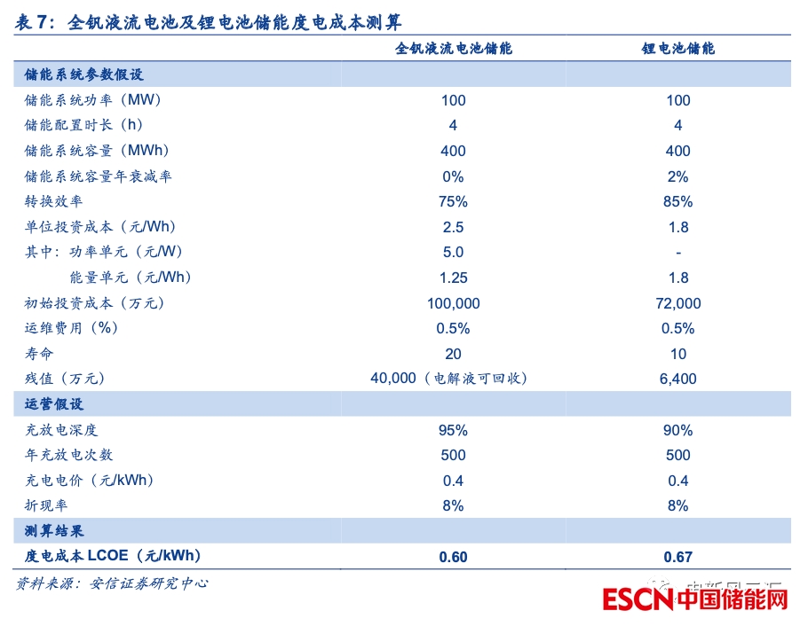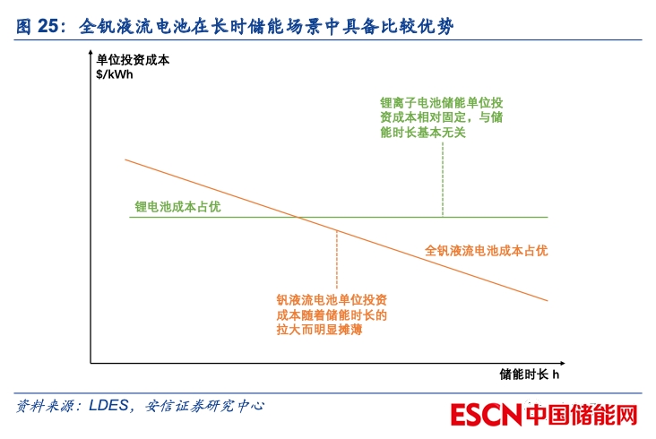 2.2.3. 中長時儲能場景中全釩液流電池已具備較好的經(jīng)濟性