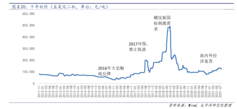 釩的價(jià)格主要受雙重因素印象,其一是鋼鐵需求,其二是環(huán)保要求。