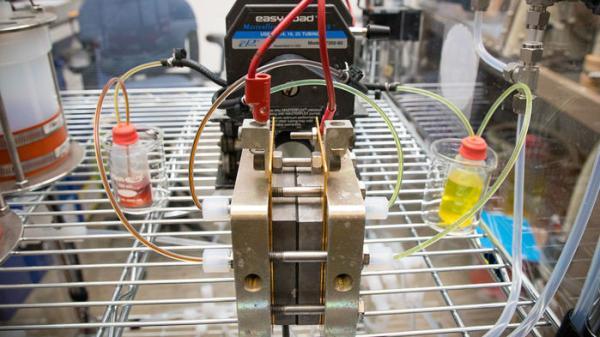 中國(guó)儲(chǔ)能網(wǎng)訊:隨著太陽(yáng)能和風(fēng)能近年來掀起價(jià)格革命,儲(chǔ)能倒成了大問題。人們需要一種大型、廉價(jià)而耐用的電池,在日落之后、風(fēng)停之后提供電力。近日發(fā)表在《焦耳》(Joule)雜志上的一篇論文介紹道,哈佛大學(xué)的研究人員利用一種有機(jī)“長(zhǎng)壽”分子制作出液流電池,儲(chǔ)存的能量可以為整座城市供電。該電池既解決了全釩液流電池的成本問題,又突破了有機(jī)液流電池的壽命瓶頸。所謂的液流電池和手機(jī)里的鋰電池一樣,都由將電解質(zhì)中存儲(chǔ)的能量轉(zhuǎn)換成電能的電極對(duì),以及將電荷從一個(gè)電極傳送到另一個(gè)電極的電解質(zhì)組成。不過,傳統(tǒng)電池將電極對(duì)和電解質(zhì)一起封裝,液流電池則將正負(fù)電極分開,電解液各自循環(huán)。這些電解液儲(chǔ)存在任意大小的外部容器中,在使用時(shí)泵入電極。因此,液流電池的充電容量可以提高到百萬瓦特級(jí)別。全釩液流電池是現(xiàn)在主流的一種液流電池,比鋰離子電池更安全,更便宜,更耐用。然而,擔(dān)任電解質(zhì)的釩金屬顆粒比較昂貴,化學(xué)家一直試圖用一類名為“醌”的有機(jī)化合物作為替代品。使用這類有機(jī)物制作電解質(zhì),成本僅為全釩液流電池的三分之一,但它們?cè)诜磸?fù)充放電后損耗很快,無法達(dá)到工業(yè)界的要求。這是有機(jī)液流電池?zé)o法商業(yè)化的主要原因。