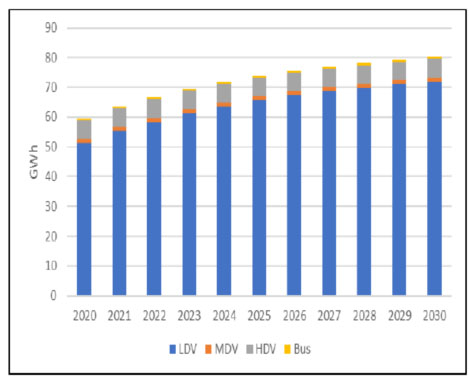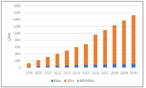 鋰離子電池容量是根據(jù)全球汽車銷售量(按類別)以及每種汽車的典型車載電池尺寸估算得出的。