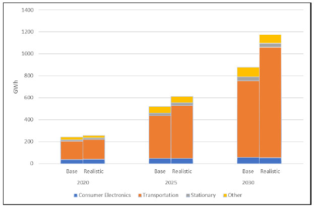 幾家分析機(jī)構(gòu)預(yù)測(cè)未來十年的鋰離子市場(chǎng)發(fā)展趨勢(shì)。其基本假設(shè)以及分析中包括的市場(chǎng)取決于具體的來源。本節(jié)概述了這些分析和假設(shè)。