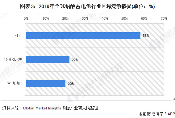 亞太和歐美地區(qū)是鉛酸蓄電池行業(yè)的主要市場,2019年累計市場份額超79%