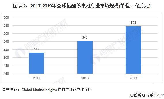 全球鉛酸蓄電池的市場規(guī)模持續(xù)增長,2019年市場規(guī)模達(dá)578億美元