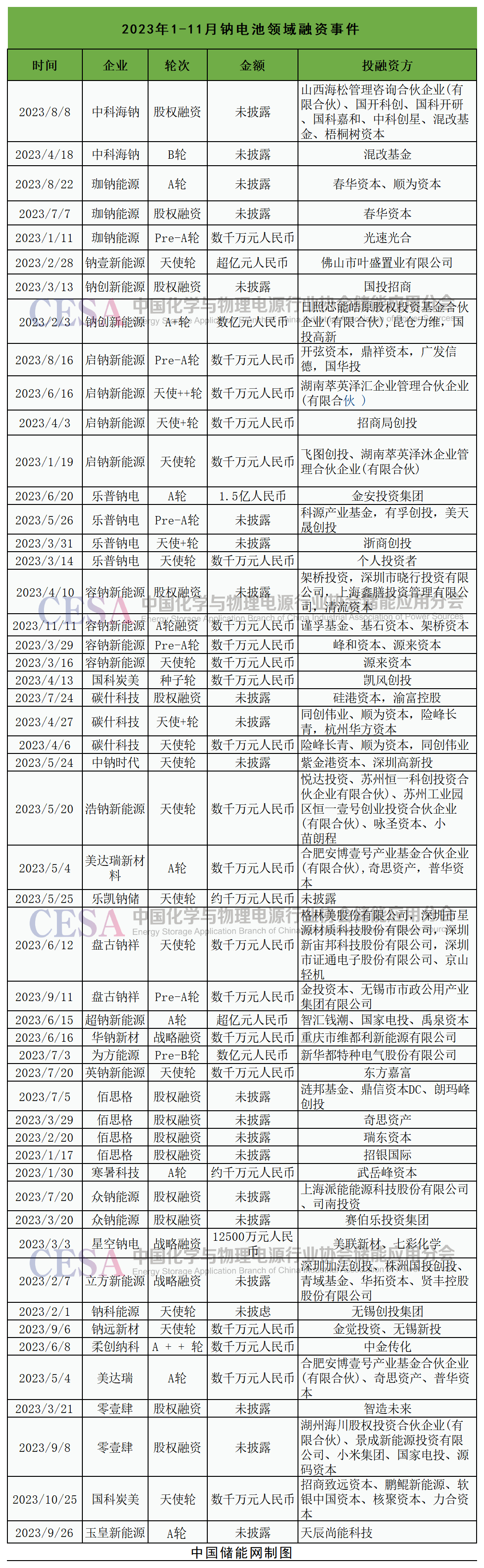 二級市場方面,鈉電池賽道仍然受資本熱捧。據(jù)中國儲能網(wǎng)不完全統(tǒng)計,今年前11月,涉及鈉電池賽道的投融資事件達近50起。具體來看,融資階段大多屬于天使輪以及A輪,覆蓋正極、負極、電解液、隔膜等全產(chǎn)業(yè)鏈,這也意味著,鈉電仍是眾多新手玩家熱衷的領(lǐng)域。