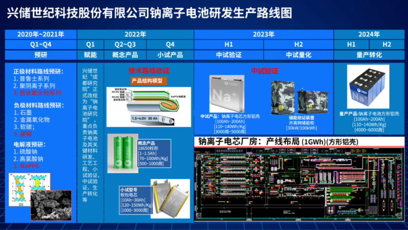 興儲世紀鈉離子電池研發(fā)生產(chǎn)路線圖
