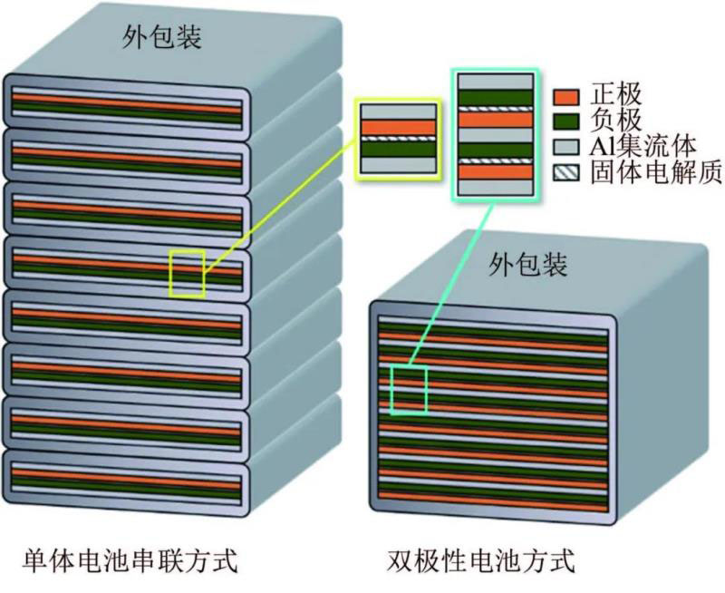 (3)開發(fā)固態(tài)電池技術(shù),著重開發(fā)新型鈉離子固體電解質(zhì),進一步提高鈉離子電導(dǎo)率,并解決固固界面難題;引入雙極性電池技術(shù),進一步提高能量密度(圖6);