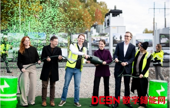 瑞典氣候與環(huán)境大臣羅米娜·普爾莫克塔里(左三)與Ingrid Capacity公司和BW ESS公司首席執(zhí)行官共同出席儲(chǔ)能項(xiàng)目落成典禮。