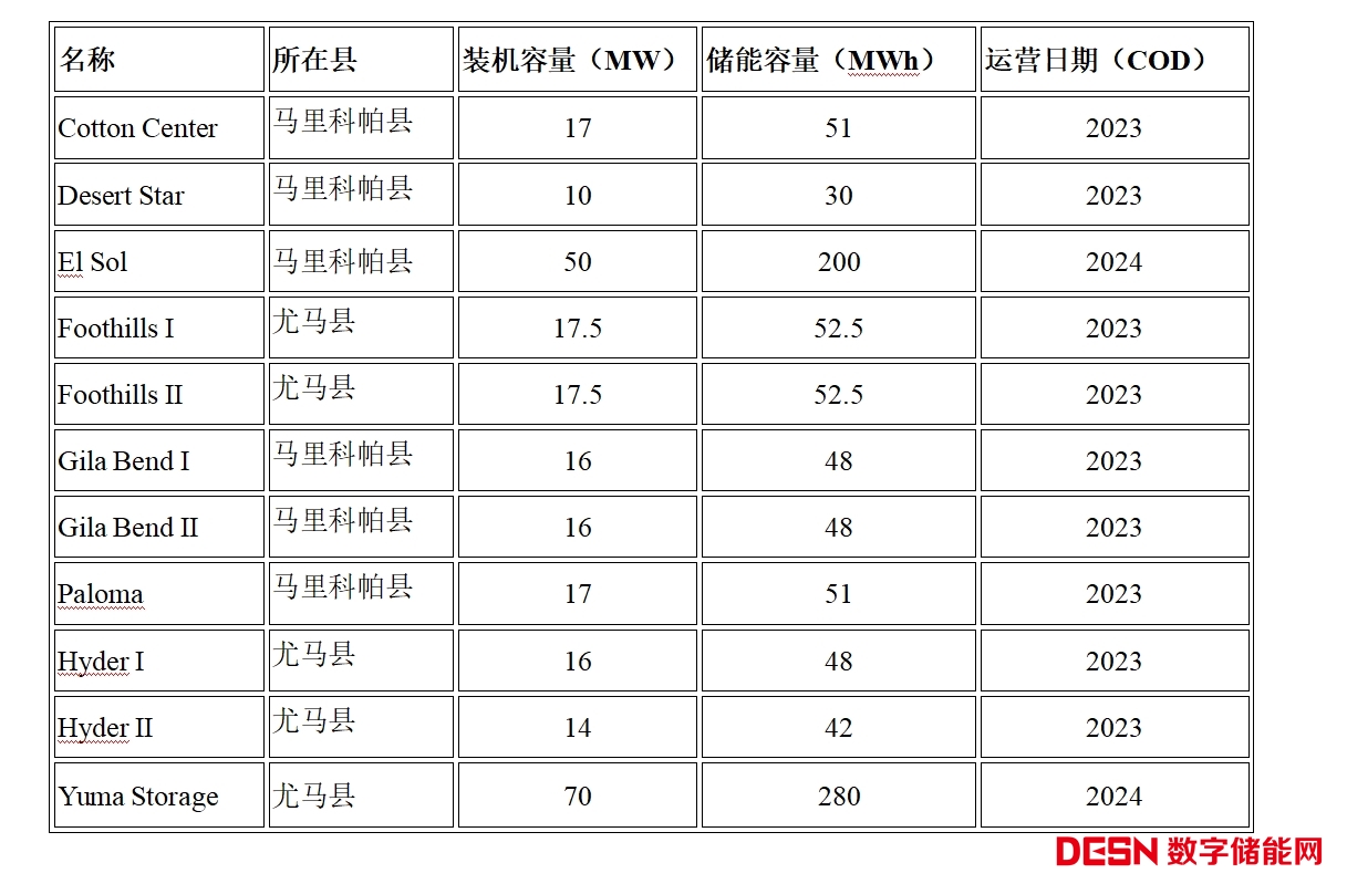 Invenergy公司運(yùn)營(yíng)所有儲(chǔ)能項(xiàng)目都位于亞利桑那州馬里科帕縣和尤馬縣,并與公用事業(yè)廠(chǎng)商亞利桑那州公共服務(wù)公司(APS)簽署了電力采購(gòu)協(xié)議。