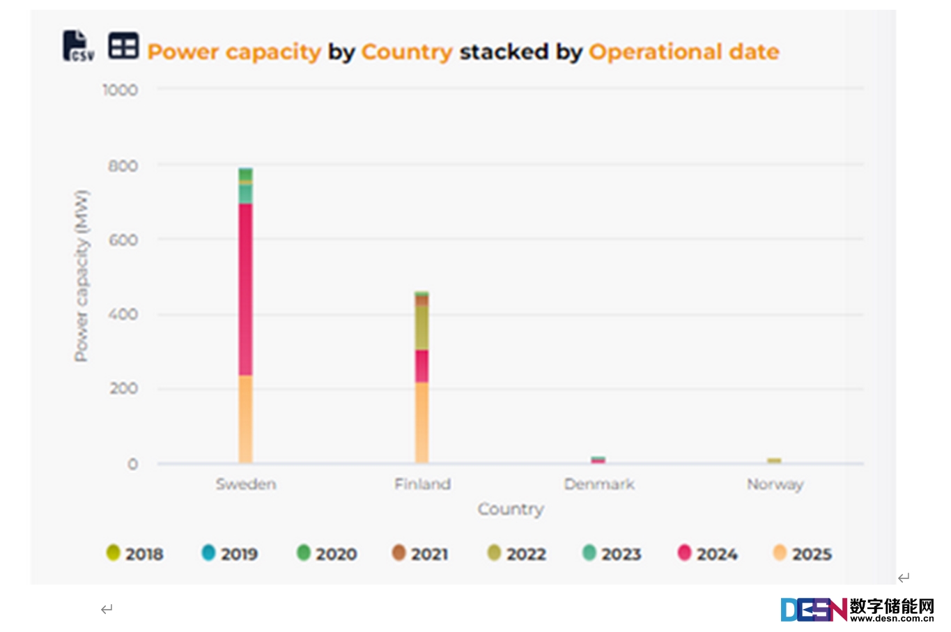 圖1北歐各國部署的電池儲能系統(tǒng)