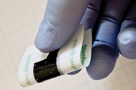 這是斯坦福大學(xué)一個材料科學(xué)家制造的,薄膜碳納米管涂在另一張表層含有金屬的鋰化合物 納米管。這些很薄的雙層薄膜放在普通紙張的兩面,紙張既是電池的支撐結(jié)構(gòu),同時也起到分離電極的作用。鋰作為電極,而碳納米管層則是電流集合管。