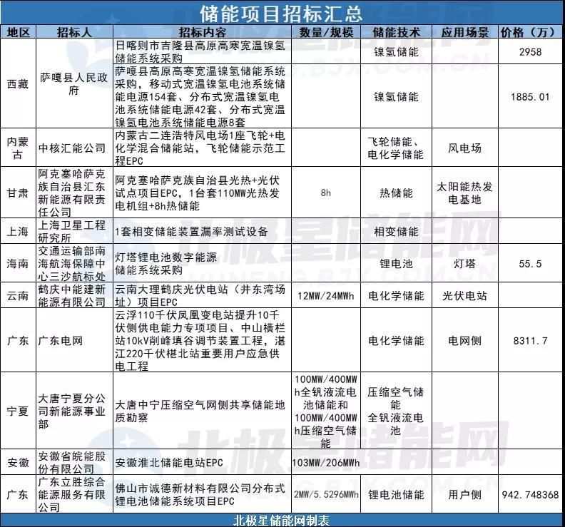中國儲能網(wǎng)訊:近一周內,儲能招標開始增多,短短幾天發(fā)布了十余則消息,而且除了常見的電化學儲能之外,近期招標中又出現(xiàn)了相變儲能、鎳氫儲能、飛輪儲能等儲能技術。最近交通運輸部發(fā)布燈塔鋰電池數(shù)字能源儲能系統(tǒng)采購豐富了儲能應用場景。