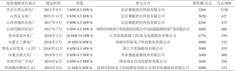 表2 國(guó)內(nèi)部分火電機(jī)組聯(lián)合儲(chǔ)能系統(tǒng)項(xiàng)目