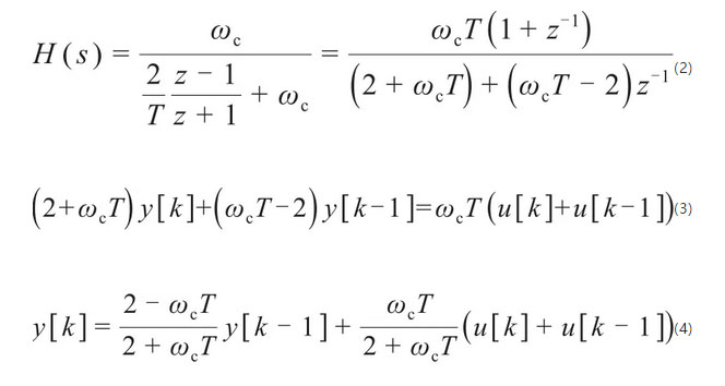 以一階巴特沃斯低通濾波器為例,其傳遞函數(shù)如式(1)所示,ωc為截至頻率,T為采樣時(shí)間。