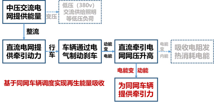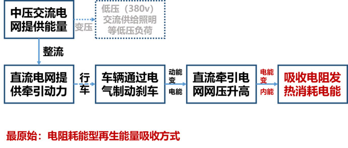 然而,除非第一列車制動的同時第二列車加速出站,否則這種再生能量就會通過列車制動電阻以熱能形式耗散。