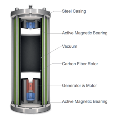 為儲能而開發(fā)的設(shè)備安裝在一個真空外殼內(nèi),以減少空氣阻力。飛輪也使用連接到轉(zhuǎn)子的發(fā)電機(jī)進(jìn)行充電和放電。