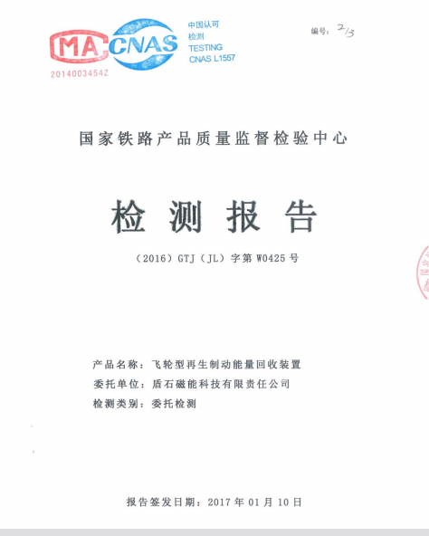 盾石磁能科技公司GTR飛輪型再生制動能量回收裝置測試認證的成功,證明該裝置技術(shù)成熟、性能優(yōu)越,運行安全穩(wěn)定。同時,也意味著GTR飛輪型再生制動能量回收裝置符合行業(yè)準入條件,在城軌列車再生制動能量回收利用、抑制牽引網(wǎng)壓跌落、供電區(qū)間穩(wěn)壓等應(yīng)用中具有卓越的技術(shù)優(yōu)勢,并將很快可以掛網(wǎng)應(yīng)用。