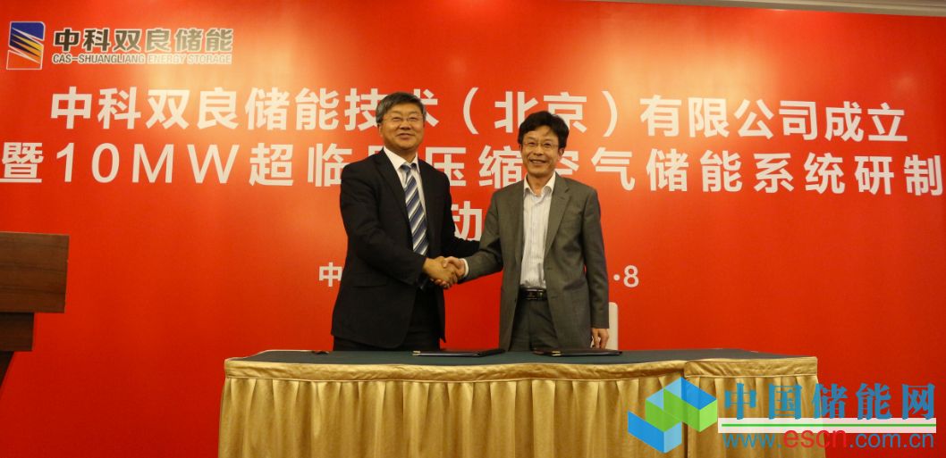 中國儲能網(wǎng)訊:5月8日,由雙良節(jié)能系統(tǒng)股份有限公司“聯(lián)姻”中國科學(xué)院工程熱物理研究所,共同打造的中科雙良儲能技術(shù)(北京)有限公司在北京正式成立,具有世界領(lǐng)先水平的10MW超臨界壓縮空氣儲能系統(tǒng)研制啟動儀式同時舉行。