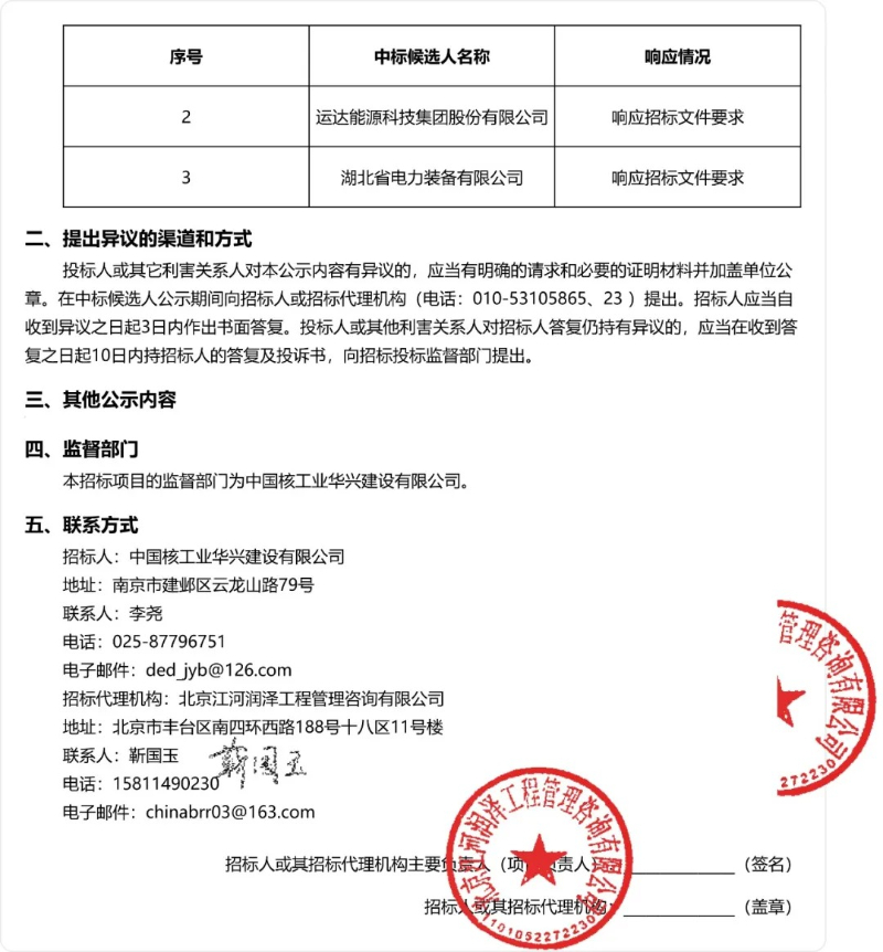 第三中標候選人:湖北省電力裝備有限公司。投標報價51490萬元,折合單價0.515元/Wh。