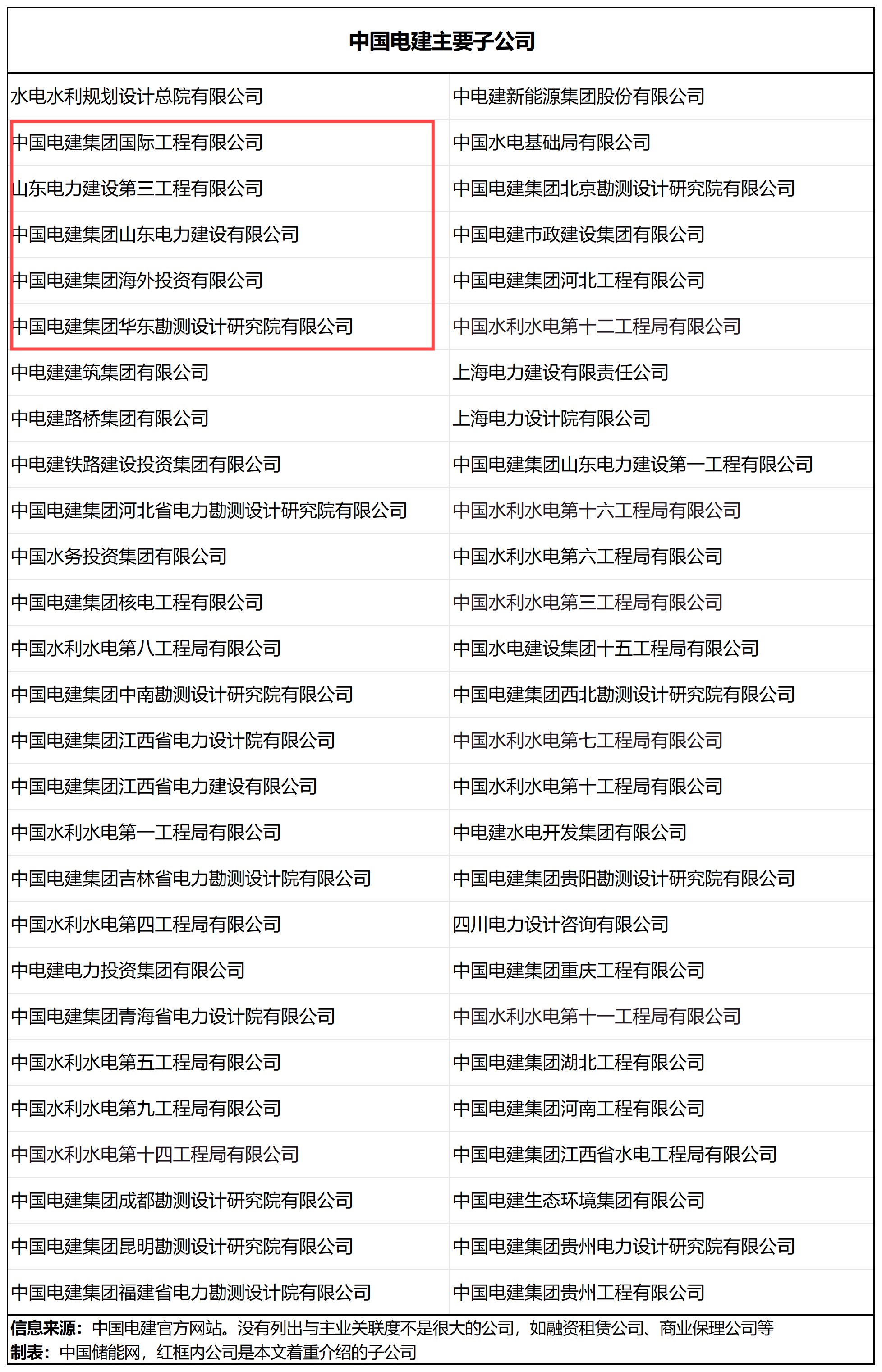 中國(guó)能建公司架構(gòu)及主要子公司(沒(méi)有列出全部公司,紅框內(nèi)是本文著重介紹的子公司) 信息來(lái)源:官網(wǎng)、社會(huì)責(zé)任報(bào)告