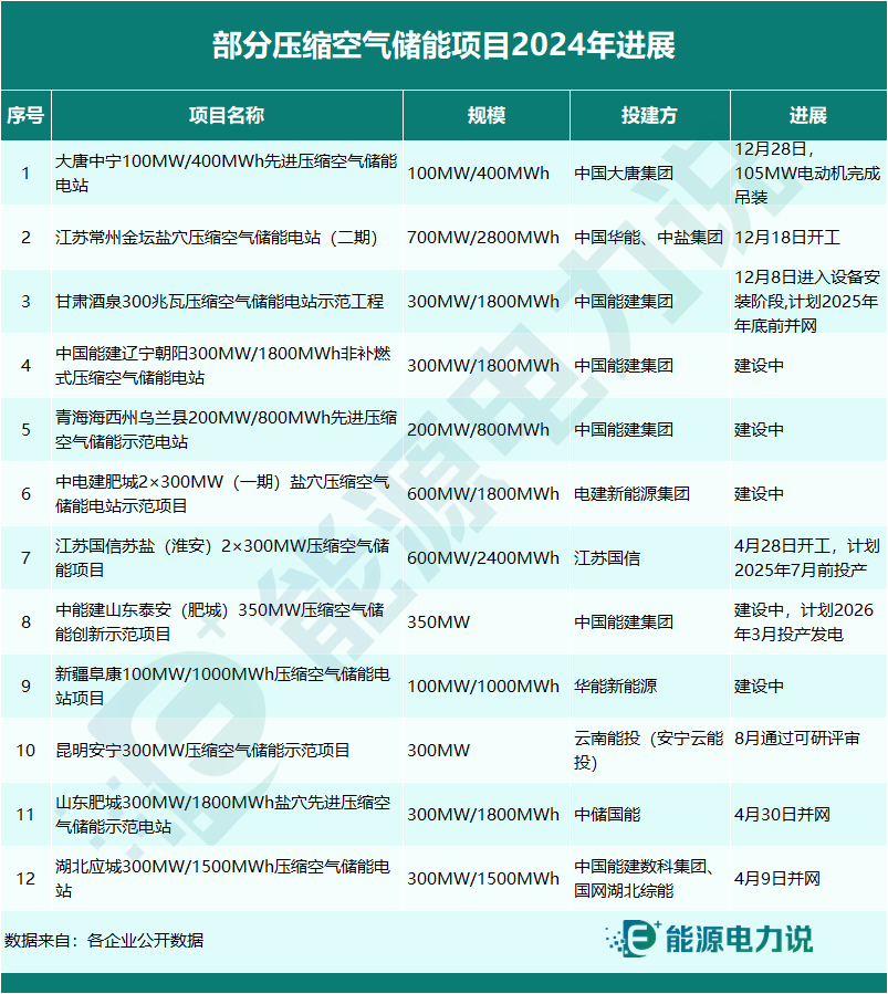 2024年,已有超4GW壓縮空氣儲(chǔ)能項(xiàng)目并網(wǎng)、開工或正在加緊建設(shè)推進(jìn),發(fā)展勢(shì)頭迅猛。