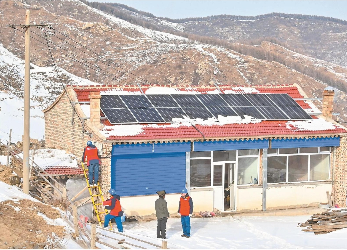 渾源縣供電公司員工在武勝家檢查“光伏+儲(chǔ)能”一體化系統(tǒng)。