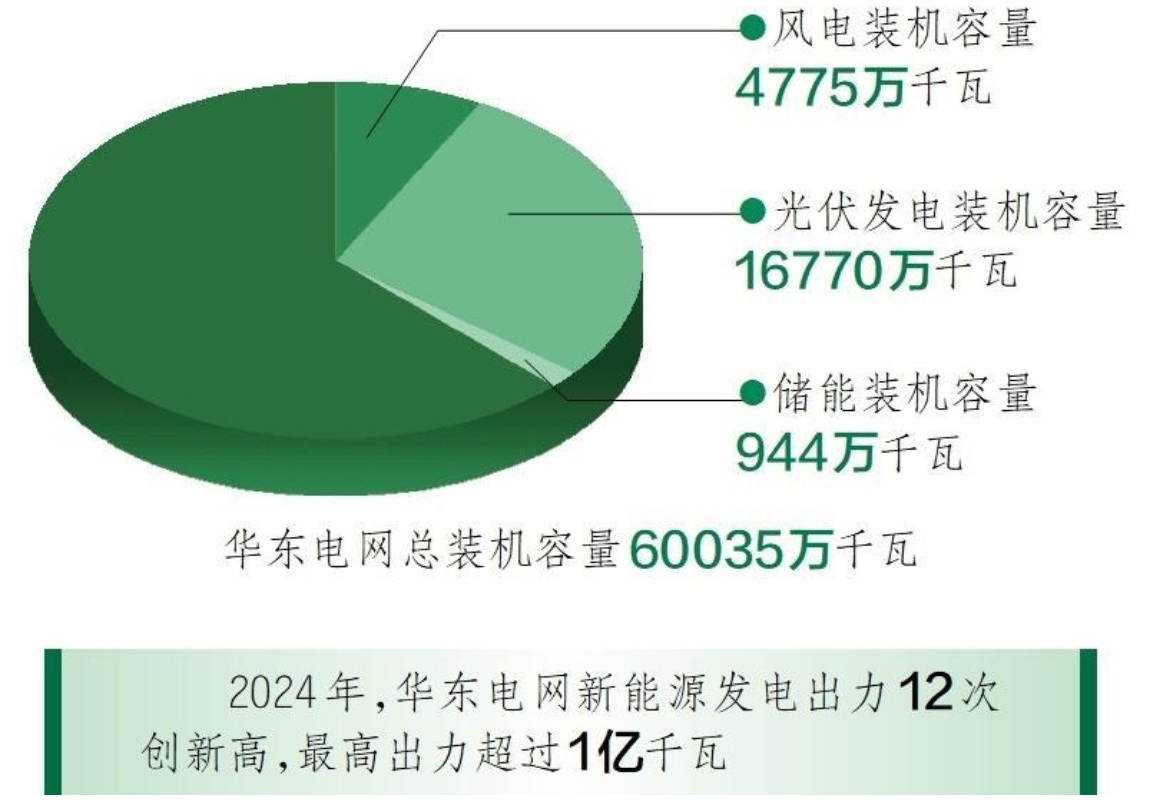 中國儲(chǔ)能網(wǎng)訊:截至2024年年底,華東電網(wǎng)總裝機(jī)容量超6億千瓦,達(dá)到60035萬千瓦,其中風(fēng)電裝機(jī)容量4775萬千瓦、光伏發(fā)電裝機(jī)容量16770萬千瓦、儲(chǔ)能裝機(jī)容量944萬千瓦。