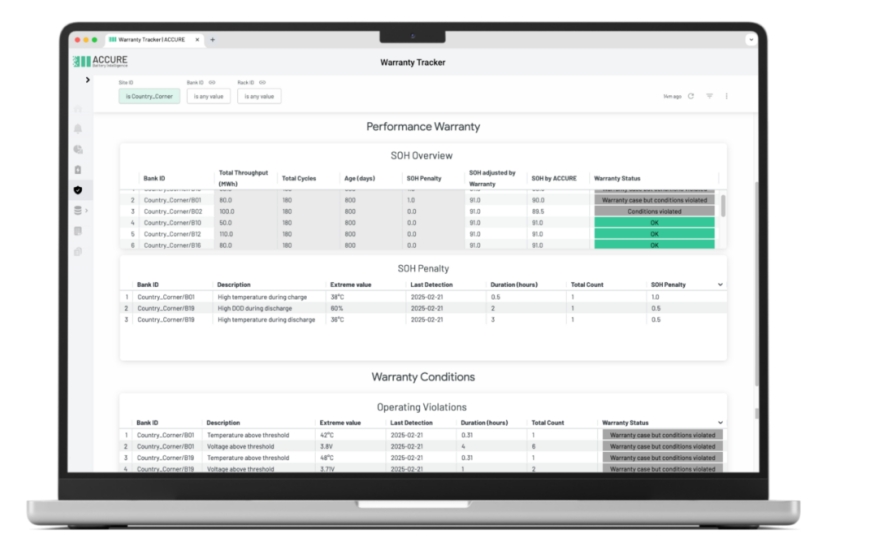去年12月,ACCURE Battery Intelligence公司為其軟件平臺推出了一項新的預(yù)測分析功能——保修跟蹤器,該功能可以通過運行數(shù)據(jù)持續(xù)監(jiān)控電池儲能系統(tǒng)。