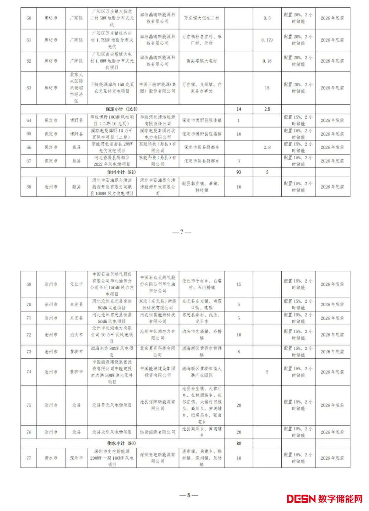 三、冀北電網(wǎng)和河北南網(wǎng)保障性并網(wǎng)項(xiàng)目需分別按照20%、15%比例配置儲(chǔ)能,時(shí)長不低于2小時(shí),并與風(fēng)光項(xiàng)目同步投產(chǎn),鼓勵(lì)項(xiàng)目單位通過自建、共建或租賃等方式靈活配置新型儲(chǔ)能,項(xiàng)目租賃儲(chǔ)能容量期限等要求參照有關(guān)文件執(zhí)行。市場化項(xiàng)目按照項(xiàng)目申報(bào)類型建設(shè)(多能互補(bǔ)、源網(wǎng)荷儲(chǔ)或配置20%、4小時(shí)儲(chǔ)能),其中多能互補(bǔ)項(xiàng)目并網(wǎng)前需落實(shí)煤電、燃?xì)鈾C(jī)組新增調(diào)峰能力并經(jīng)電網(wǎng)公司確認(rèn),源網(wǎng)荷儲(chǔ)項(xiàng)目可按照我委制定的源網(wǎng)荷儲(chǔ)項(xiàng)目有關(guān)標(biāo)準(zhǔn)或配置20%、4小時(shí)儲(chǔ)能建設(shè)。