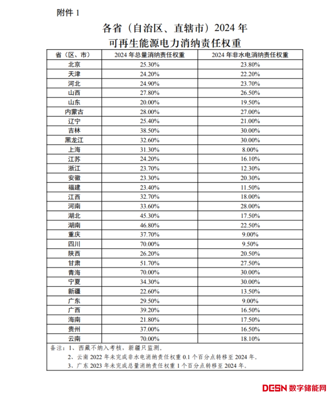 附件:1.各省(自治區(qū)、直轄市)2024年可再生能源電力消納責任權重