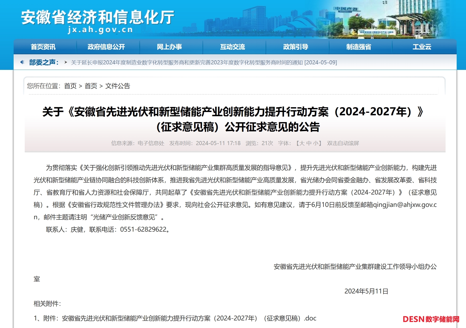 安徽省先進(jìn)光伏和新型儲(chǔ)能產(chǎn)業(yè)集群建設(shè)工作領(lǐng)導(dǎo)小組辦公室