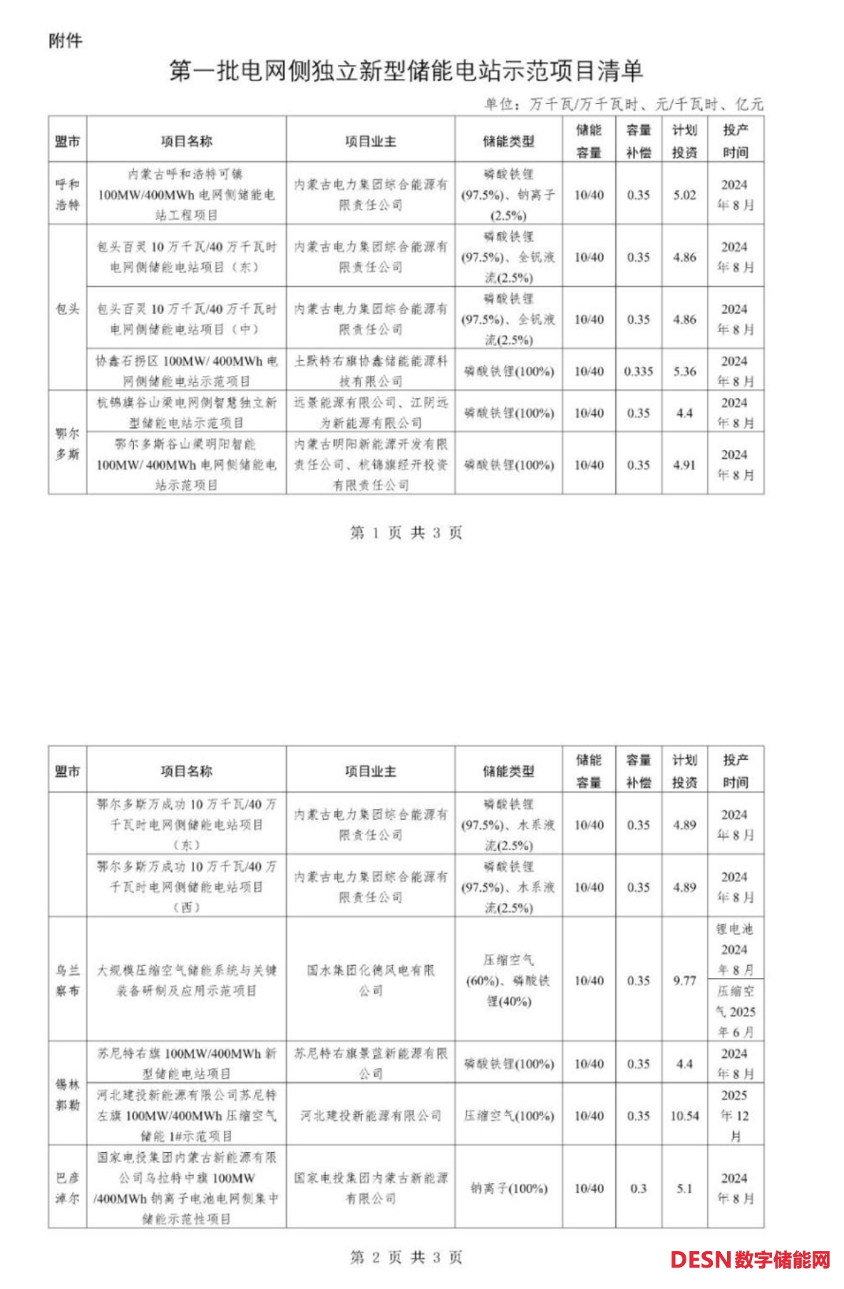 此外,《通知》還要求,鋰離子電池、鈉離子電池、液流電池等電化學(xué)儲能應(yīng)于2024年建成投產(chǎn),蒙西區(qū)域內(nèi)項目要力爭2024年8月底前建成投產(chǎn), 蒙東區(qū)域內(nèi)項目要力爭 2024年10月底前建成投產(chǎn);壓縮空氣等其他形式儲能應(yīng)于2025年建成投產(chǎn)。